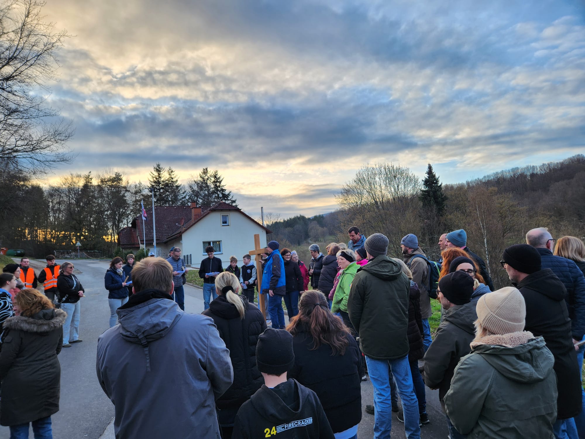 Am Karfeitagabend haben sich zahlreiche Firmlinge mit Familien unf Gemeindemitglieder auf den Kreuzgang gemacht, der sie von der Kirche in Schmalwasser über mehrere Stationen bis zum Hof der Pfarrscheune in Sandberg geführt hat.