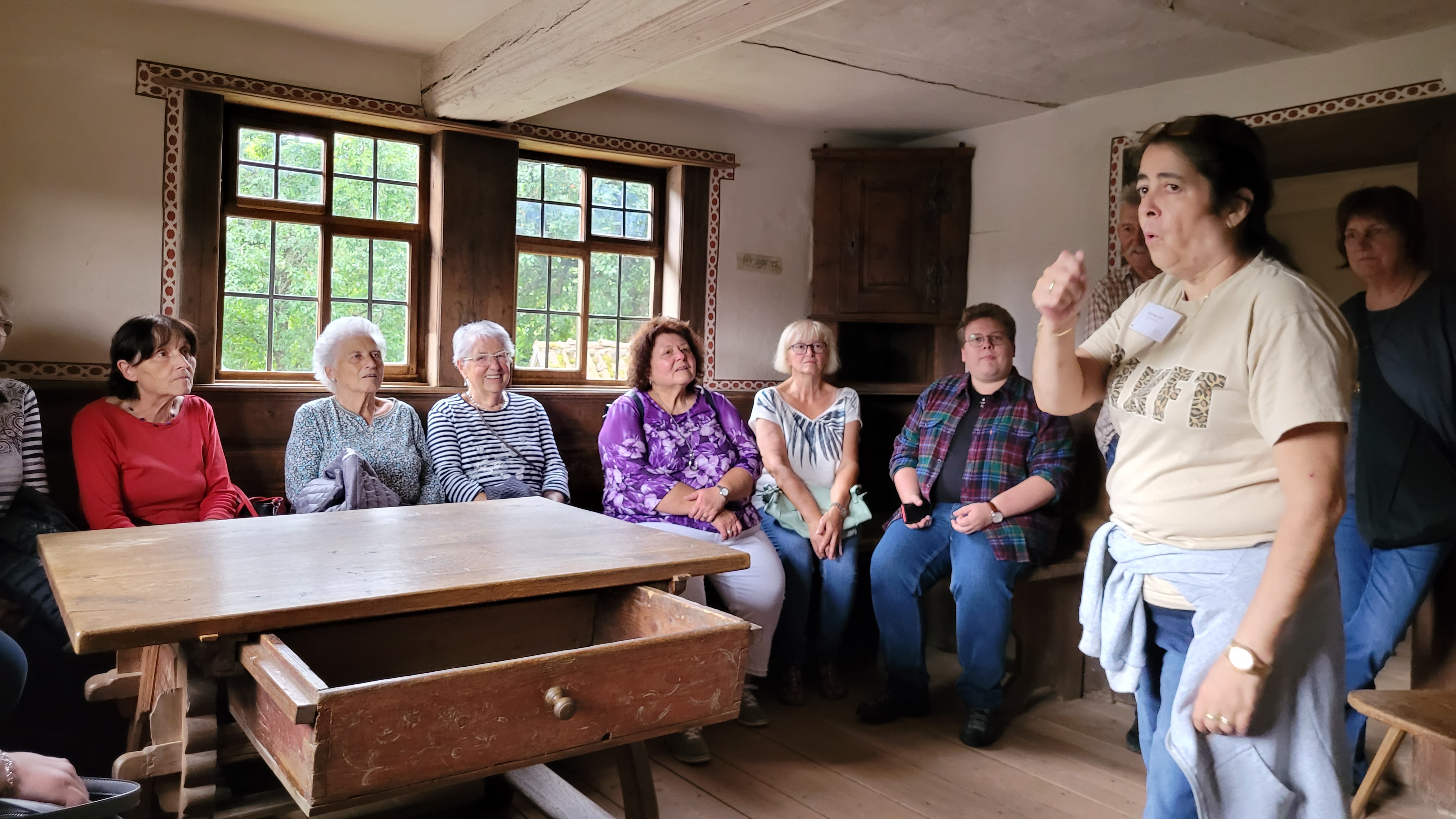 Nach der Fahrt mit dem Hochrhönbus kamen sie gegen 16 Uhr an und teilten sich entsprechend ihrer Interessen in zwei Gruppen auf. Die einen gingen bei einer Führung der Bedeutung zahlreicher Sprichwörter auf den Grund, die ihren Ursprung in längst vergangener Zeit hatten. Die anderen befassten sich damit, wie die Menschen sich früher ernährten. Nachdem alle in der ehemaligen Leutershäuser Kirche aus voller Kehle das „Großer Gott, wir loben dich“ und „Segne du, Maria“ gesungen hatten, zogen die Teilnehmer des Ausflugs ins Museumswirtshaus und ließen dort den Tag bei Speis’ und Trank und angeregten Gesprächen ausklingen.