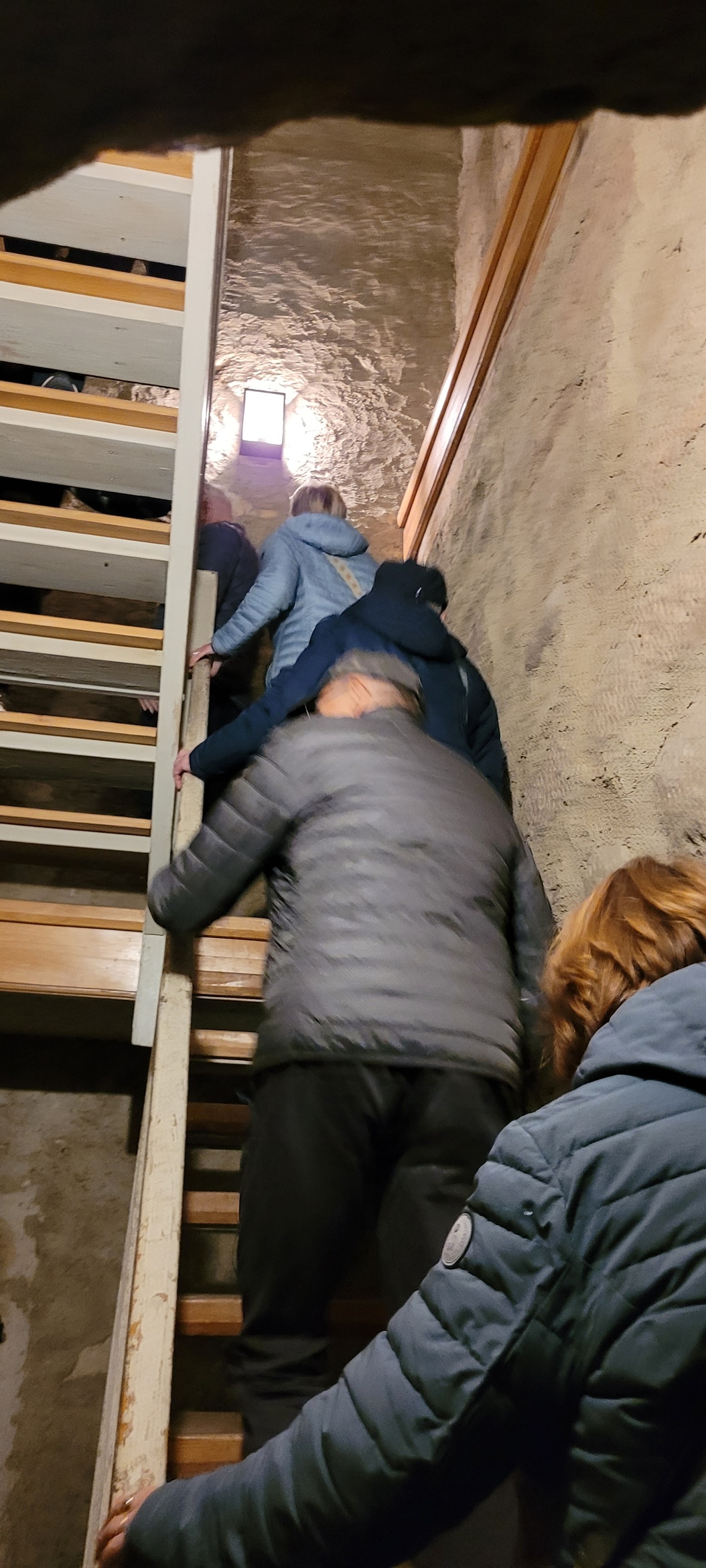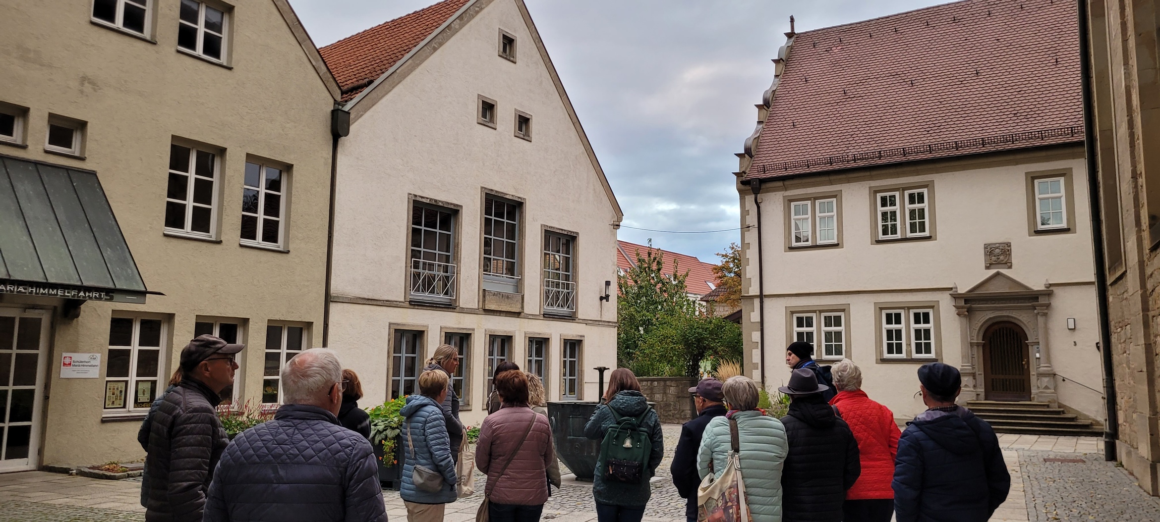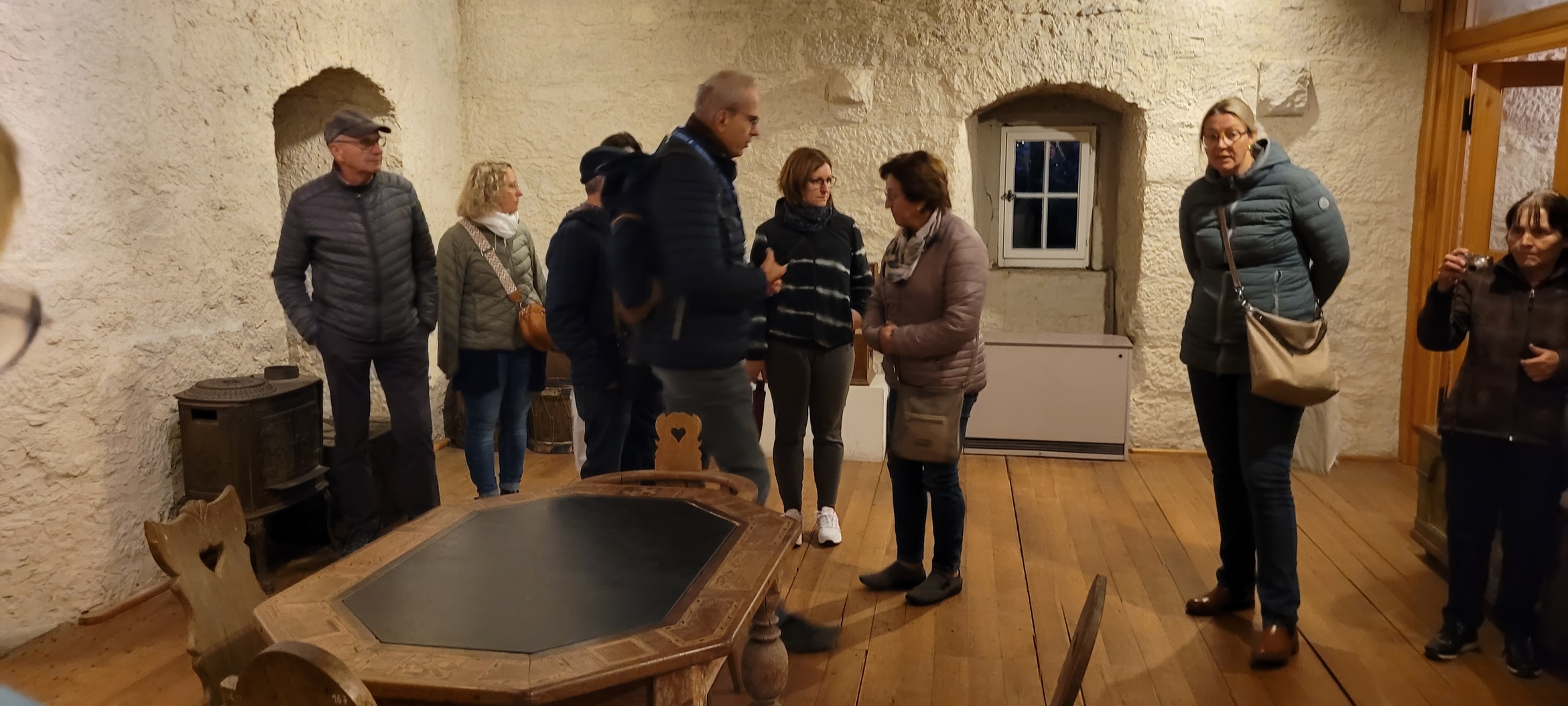 In zwei Gruppen wurden sie von zwei Stadtführern an zentrale Stellen der Innenstadt geführt und erfuhren dabei in kurzweiligen Erzählungen Wissenswertes und Amüsantes rund um Geschichte und Kultur der Kreisstadt. So wurden sie ausgehend vom Rathausvorplatz an die Stelle des früheren Spörleintors geführt, besichtigten die Karmelitenkirche und die Stadtpfarrkirche und erklommen das Hohntor mit wunderbaren Aussichten auf die Stadt bei Nacht. Im Anschluss kehrten alle beim Italiener ein und verbrachten miteinander einen schönen Abend.