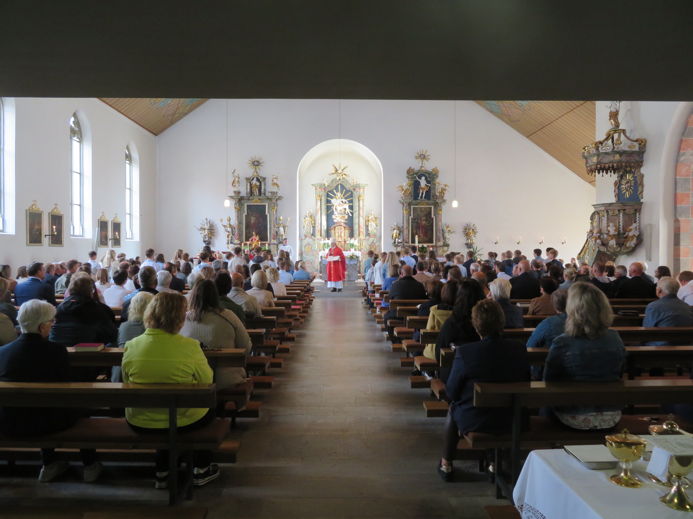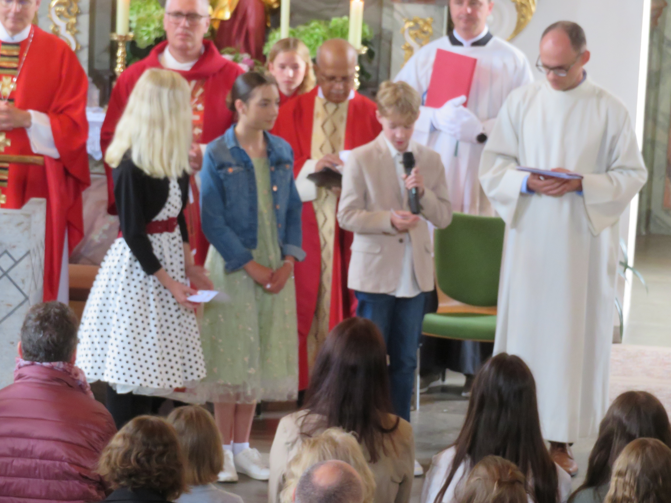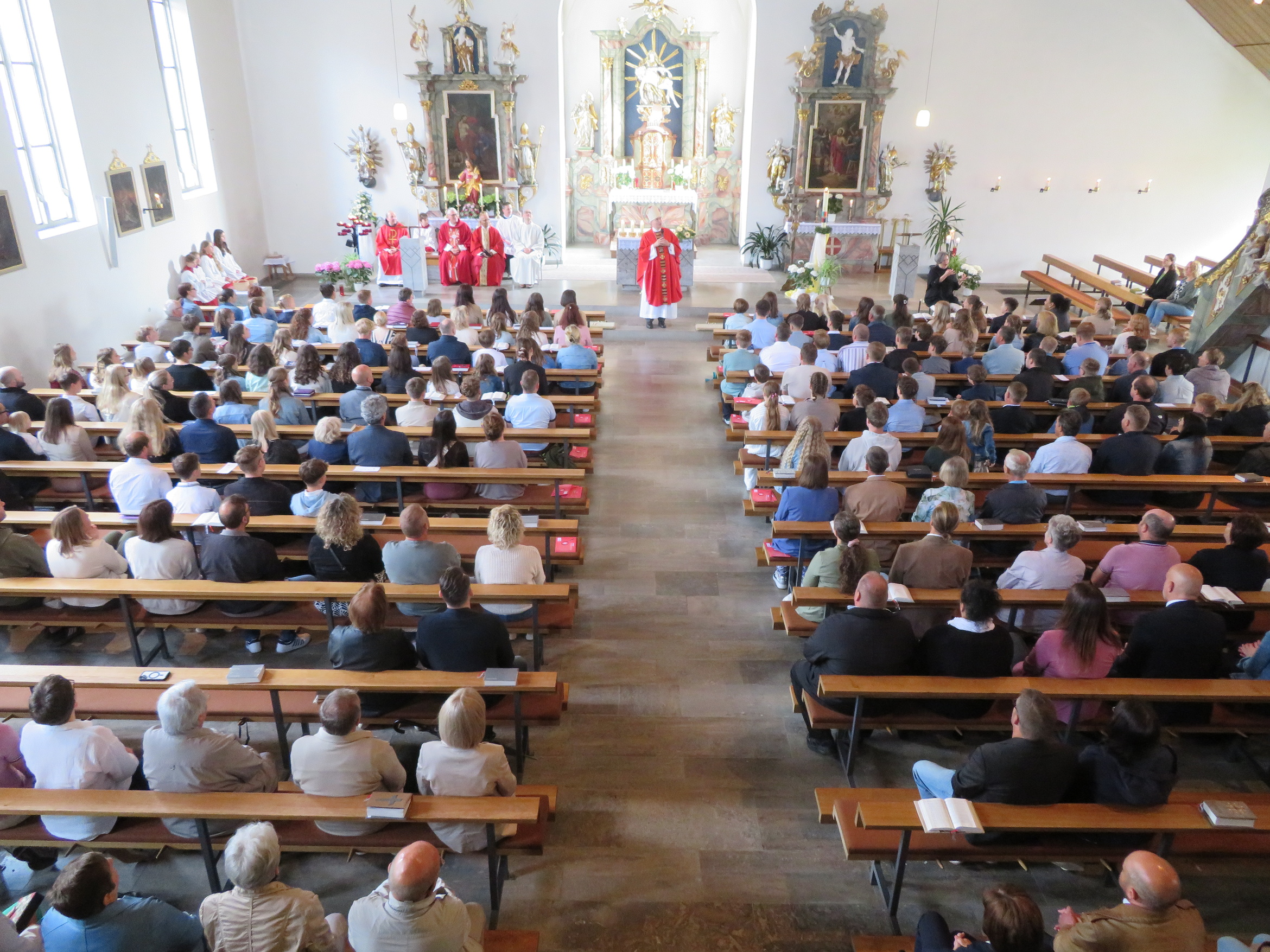 Der rund zweistündige Gottesdienst war ein bewegendes Erlebnis für alle Anwesenden. Elias Göpfert aus Sandberg hieß den Weihbischof herzlich willkommen und Pastoralreferent Johannes Krebs begrüßte die Firmlinge mit ihren Paten, Familien und Angehörigen. Die Feier wurde zudem von Bruder Othmar Brüggemann vom Kloster Kreuzberg, Pfarrer Benjamin Pereira und Diakon Siegbert Kuhnen mitgestaltet. Für eine stimmungsvolle musikalische Begleitung sorgte Sonja Rahm mit Orgelspiel und Gesang, die den Gottesdienst zu einem besonderen Erlebnis machte.