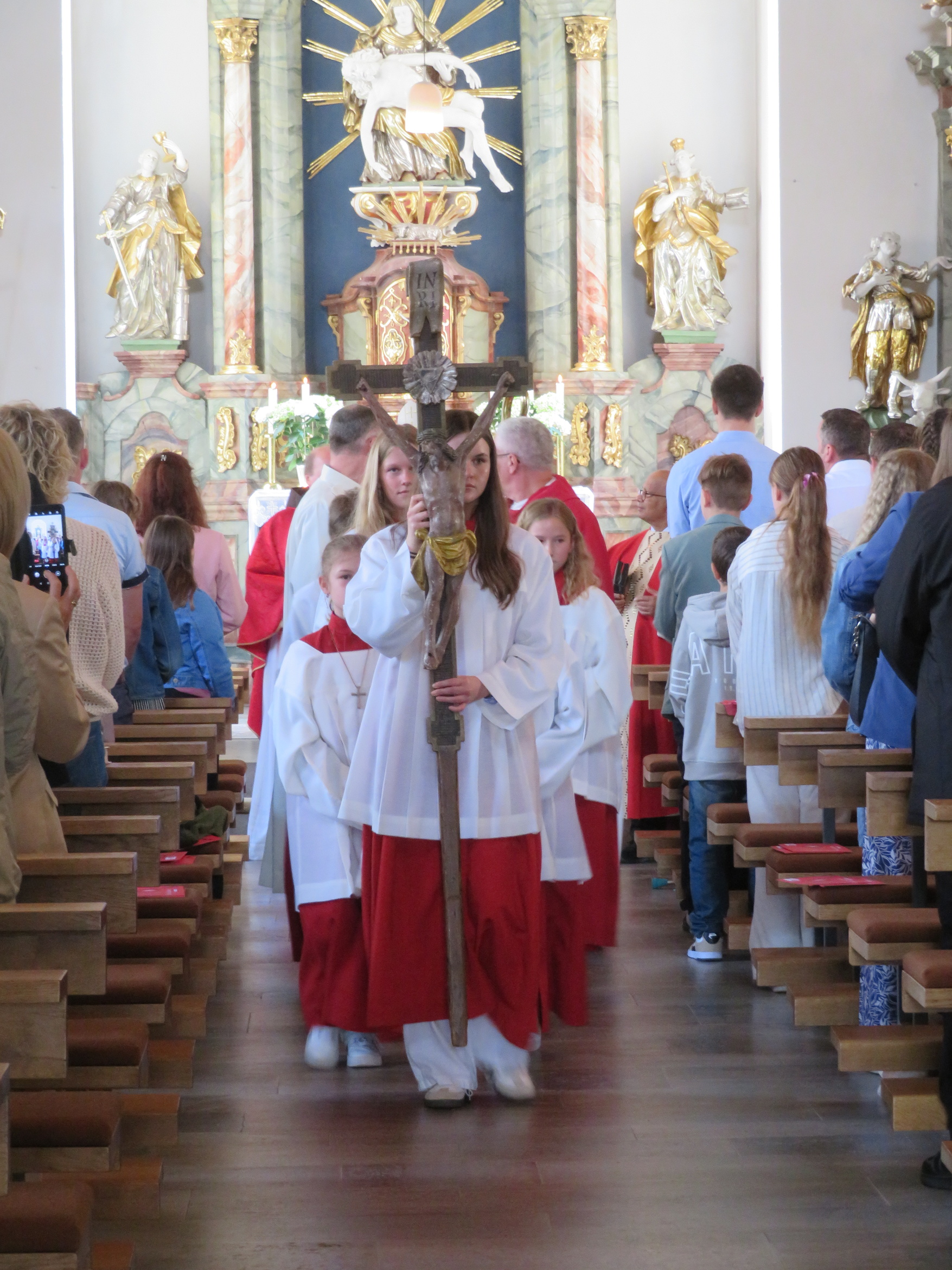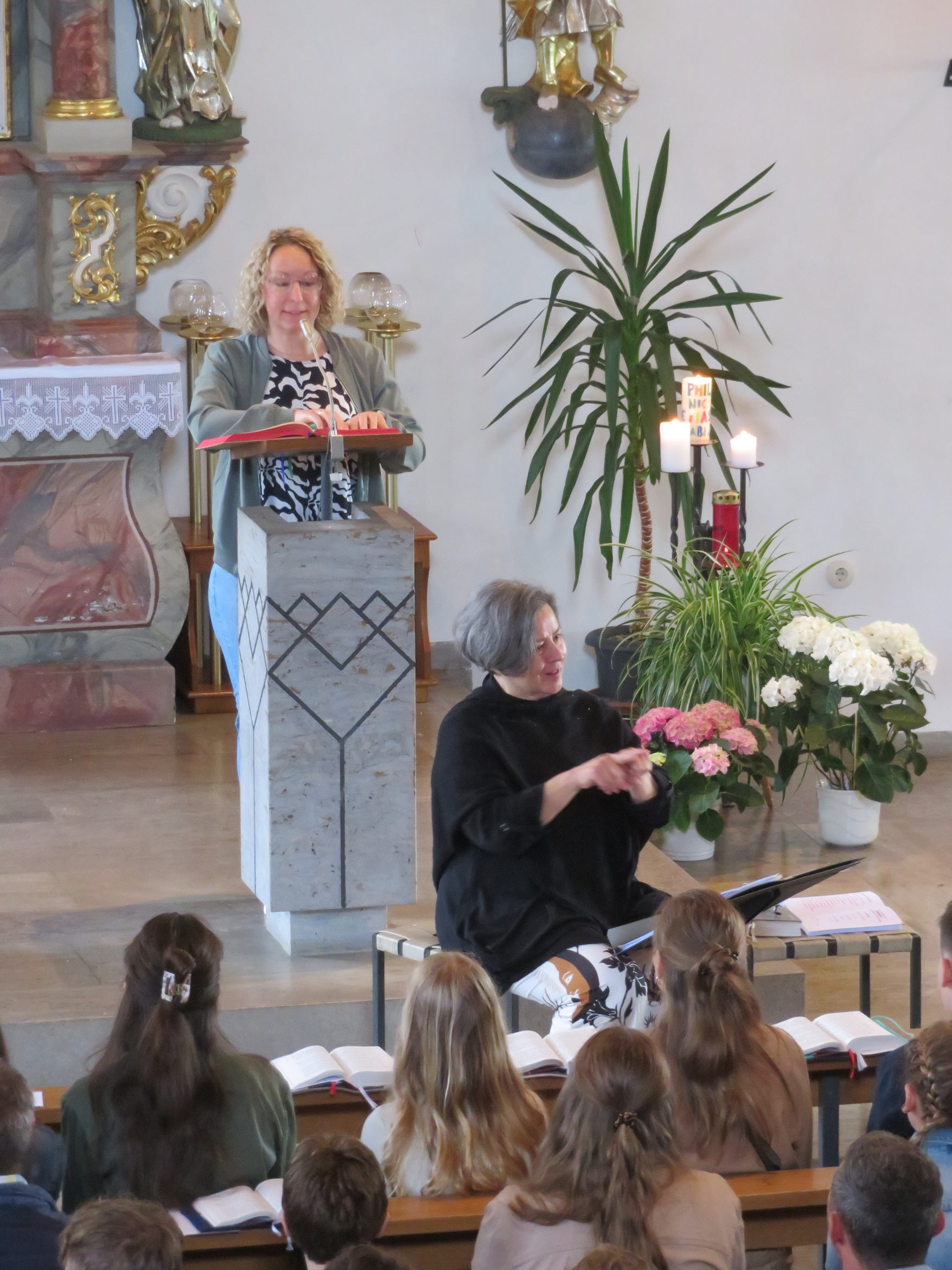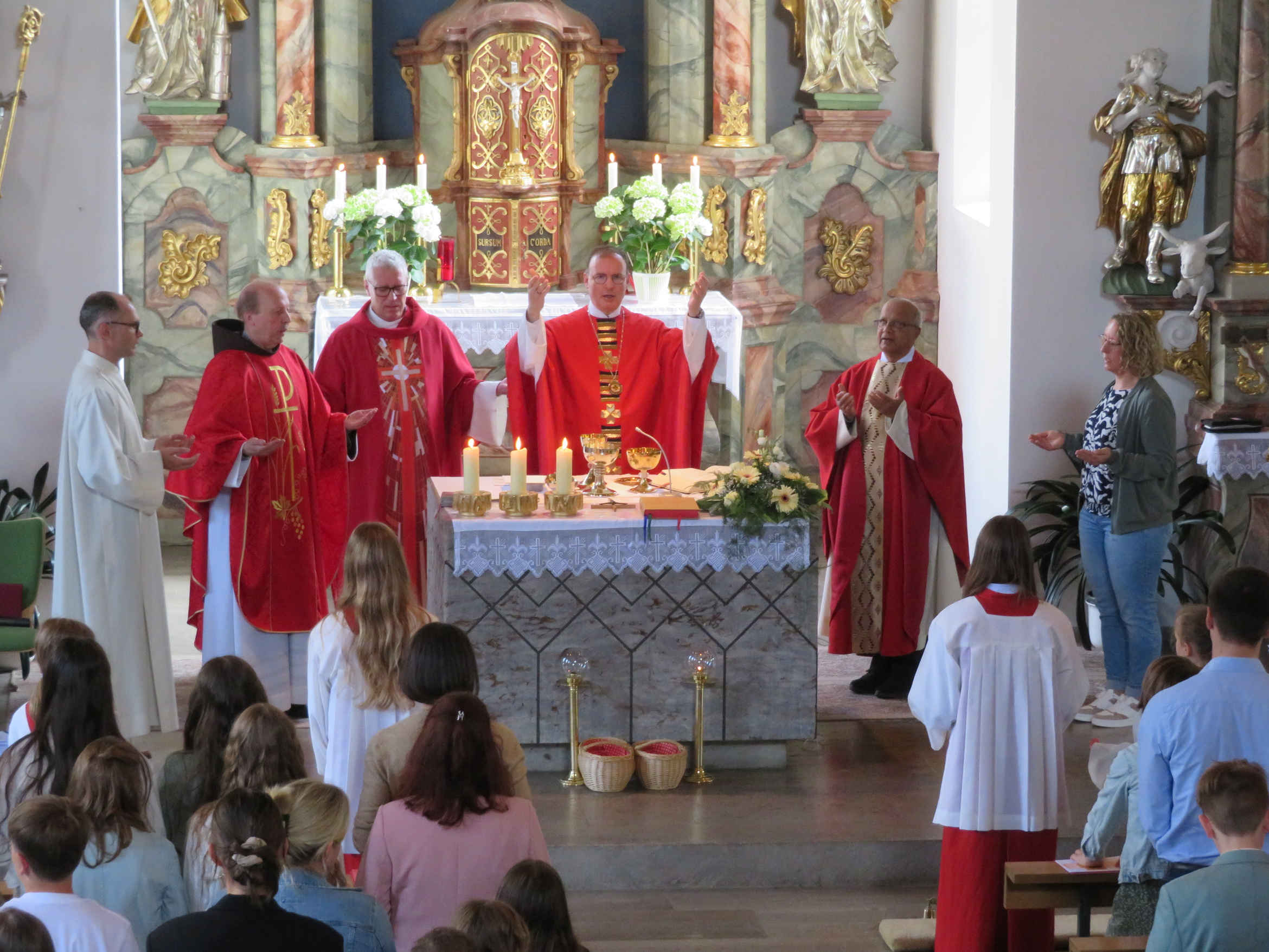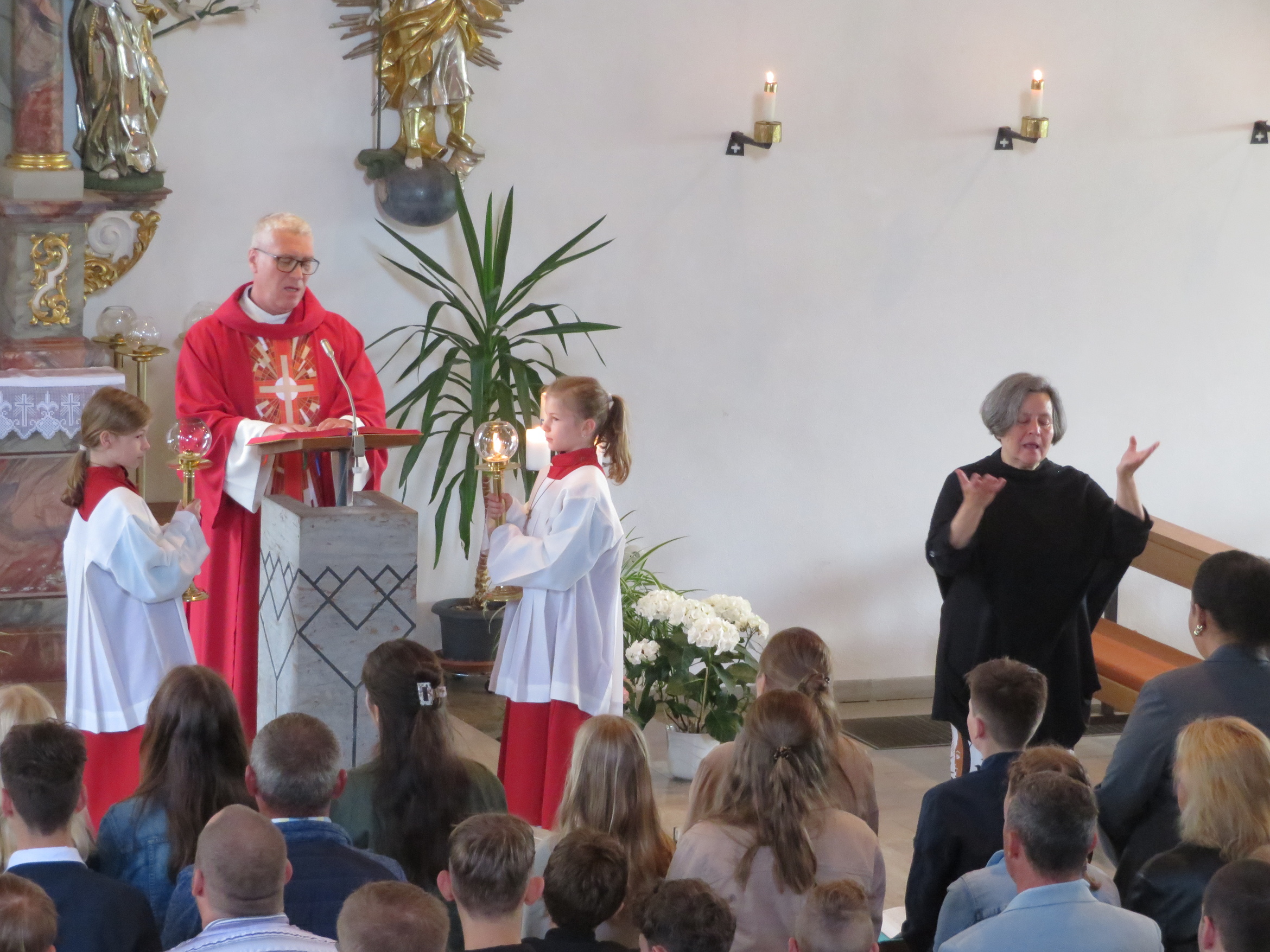 Der rund zweistündige Gottesdienst war ein bewegendes Erlebnis für alle Anwesenden. Elias Göpfert aus Sandberg hieß den Weihbischof herzlich willkommen und Pastoralreferent Johannes Krebs begrüßte die Firmlinge mit ihren Paten, Familien und Angehörigen. Die Feier wurde zudem von Bruder Othmar Brüggemann vom Kloster Kreuzberg, Pfarrer Benjamin Pereira und Diakon Siegbert Kuhnen mitgestaltet. Für eine stimmungsvolle musikalische Begleitung sorgte Sonja Rahm mit Orgelspiel und Gesang, die den Gottesdienst zu einem besonderen Erlebnis machte.