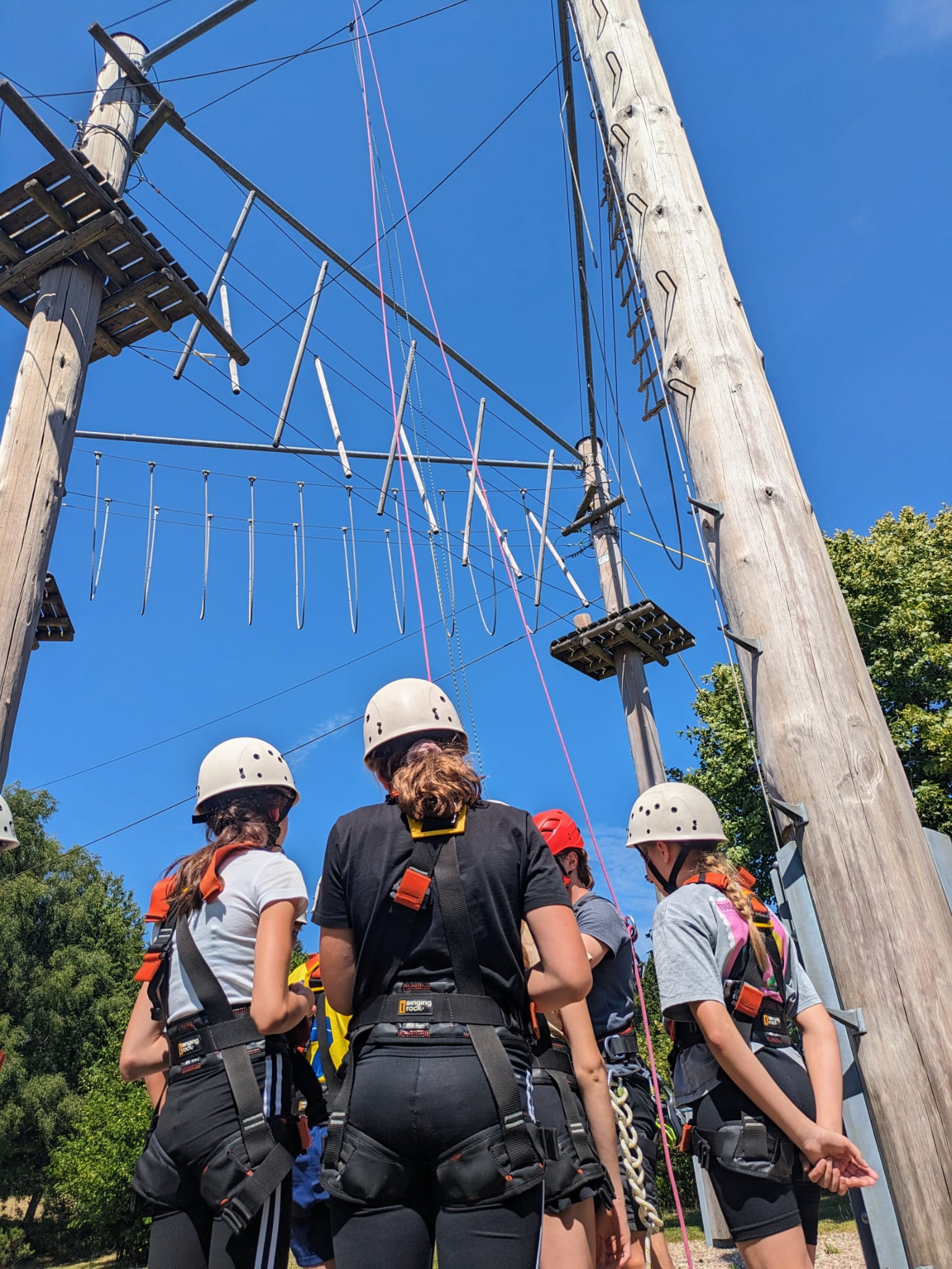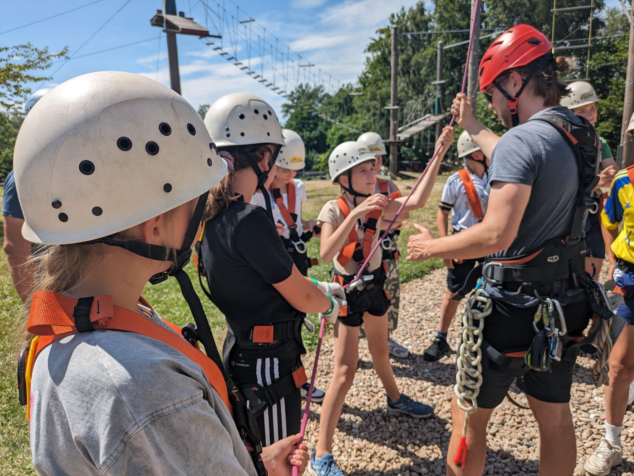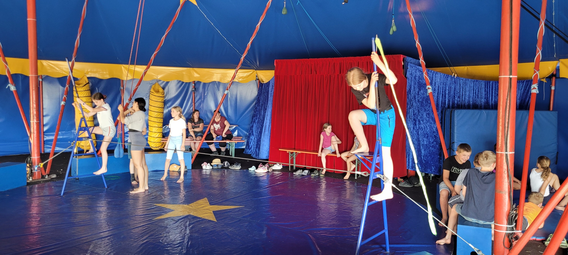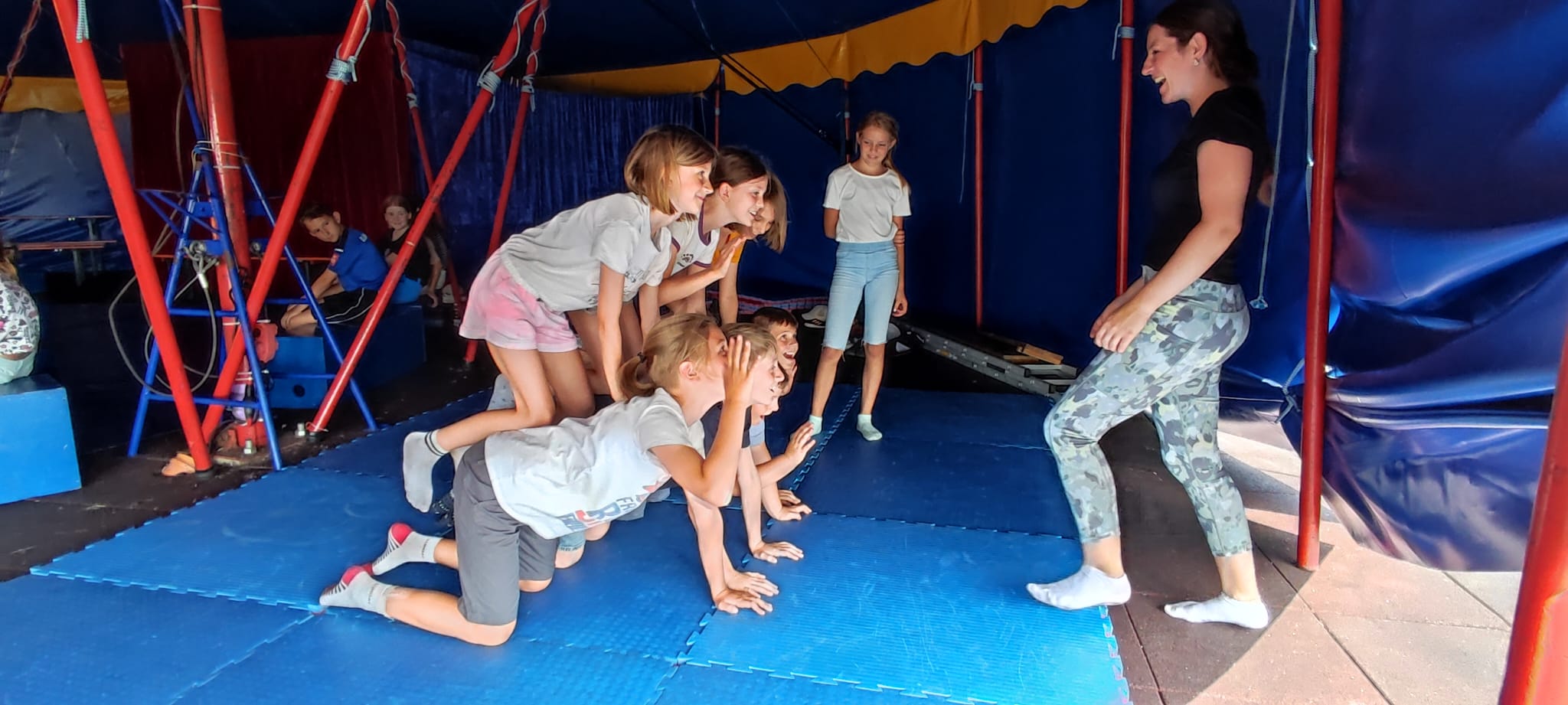 Am Nachmittag stand ein abwechslungsreiches Programm des Teams vom Volkersberg auf dem Plan. Eine Gruppe wagte sich in den Hochseilgarten, wo sie spielerisch ihre Grenzen austesten und viel Spaß hatten. Die andere Gruppe tauchte in die faszinierende Welt des Zirkus ein. Die jüngeren Ministranten vollzogen akrobatische Kunststücke und verwandelten sich in kleine Fakire und Seilakrobaten. Beide Angebote sorgten für Begeisterung und unvergessliche Momente.