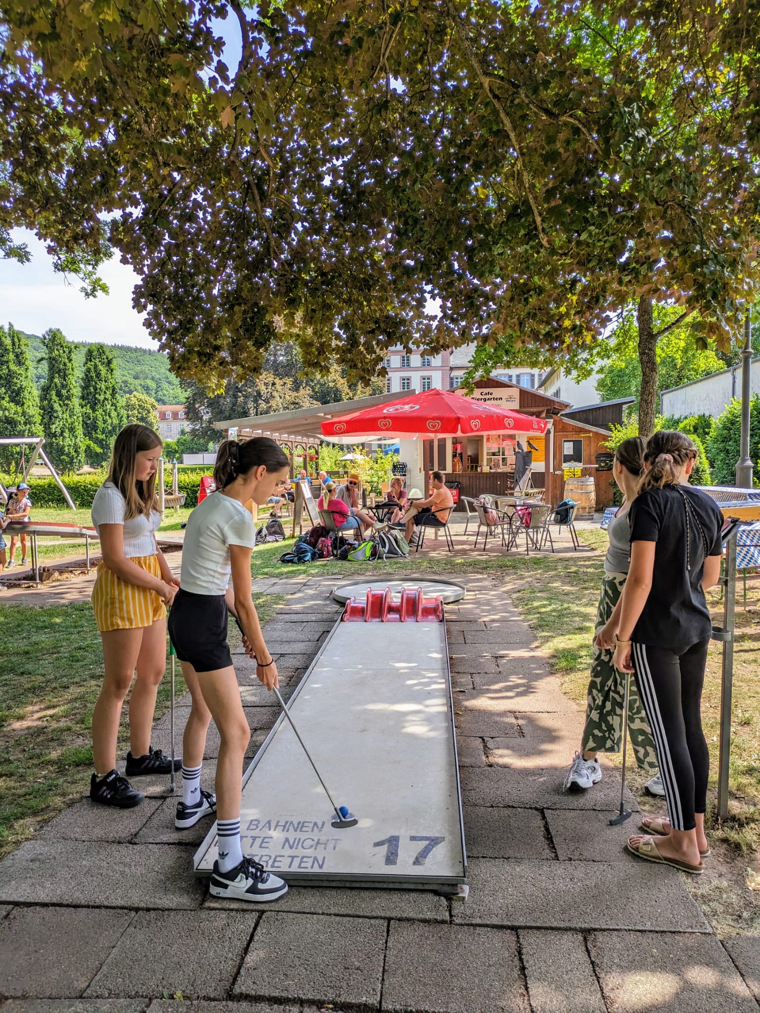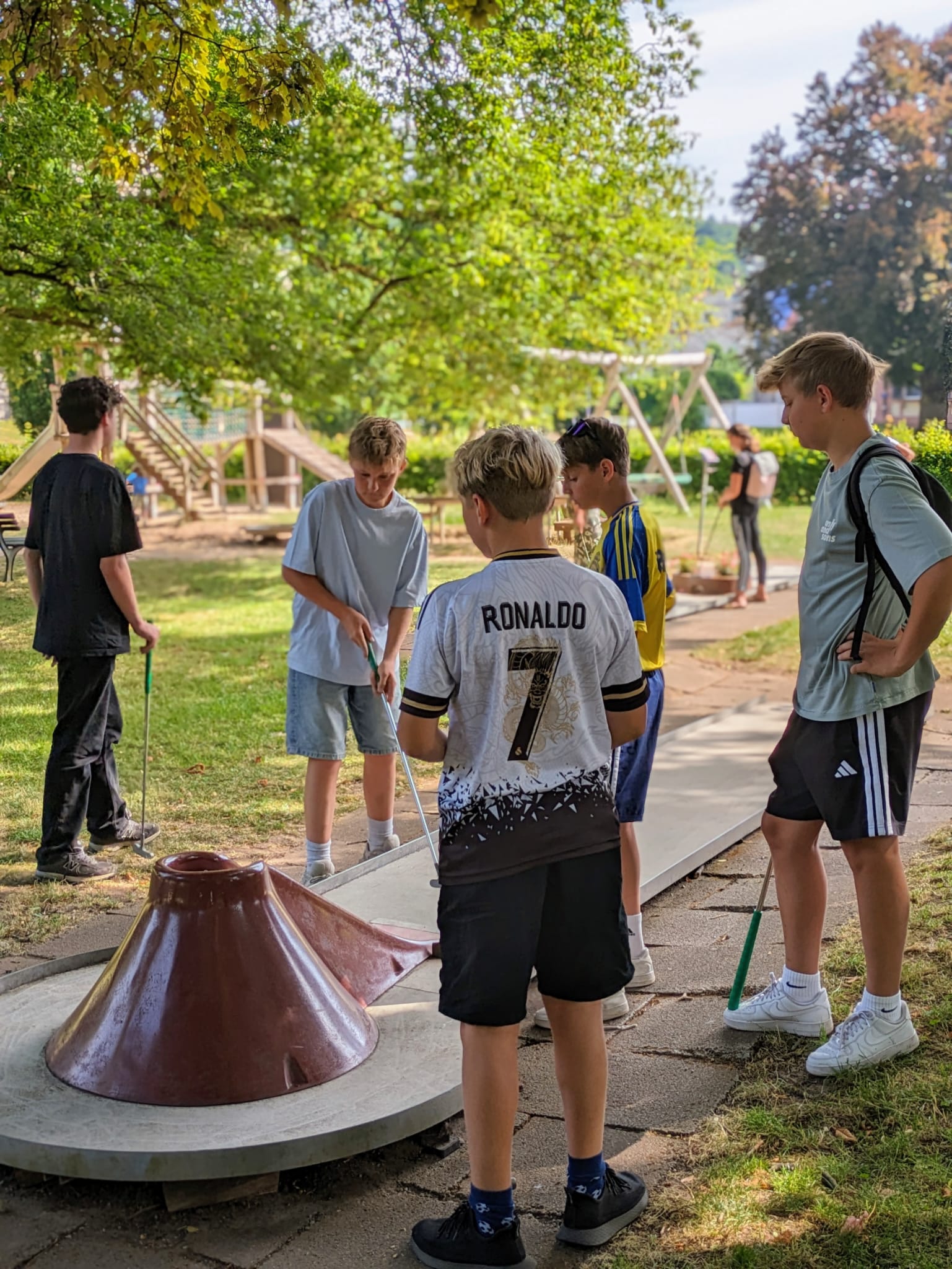Der Vormittag startete sportlich mit einer Runde Minigolf im idyllischen Staatsbad Bad Brückenau. Nachdem alle die Minigolfschläger geschwungen hatten, begab sich ein Teil der Gruppe auf eine Wanderung auf dem historischen Königsweg. Hier wandelten die Ministranten auf den Spuren König Ludwigs und genossen die malerische Natur, auch wenn der Anstieg den ein oder anderen außer Puste geraten ließ.