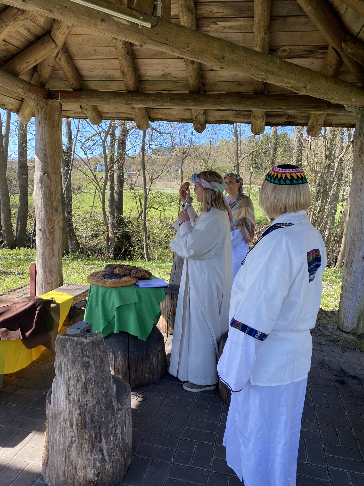 Den Höhepunkt erlebten die Familien an der letzten Station. Die Jünger erkannten in ihrem Begleiter den auferstandenen Jesus, als er das Dankgebet sprach und mit ihnen aß. Alle Versammelten in Oberelsbach durften nun miteinander das Brot brechen und Jesu Worte verinnerlichen: Immer wenn ihr das Brot miteinander teilt, dann bin ich mitten unter euch. Das österliche Halleluja rundete den Emmausgang ab.