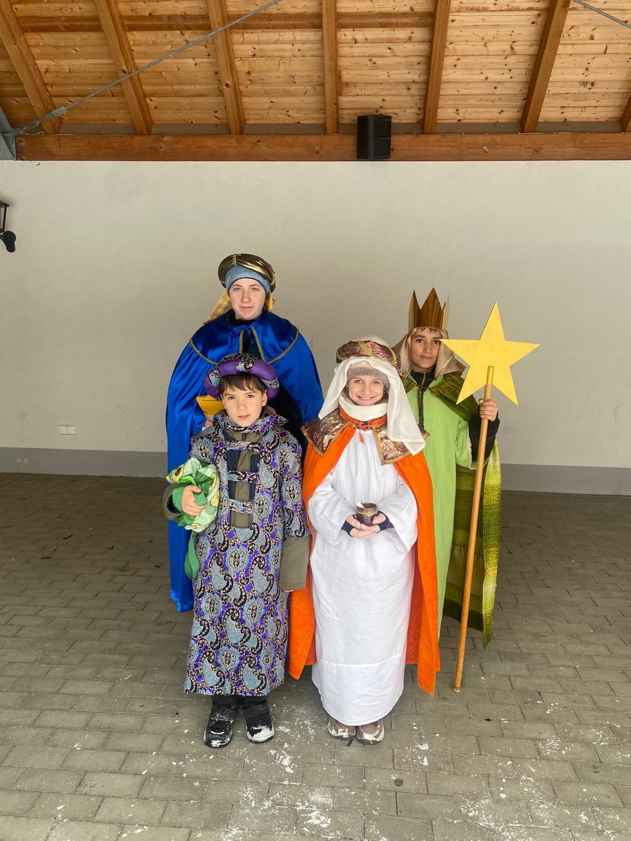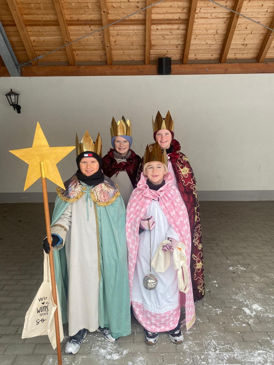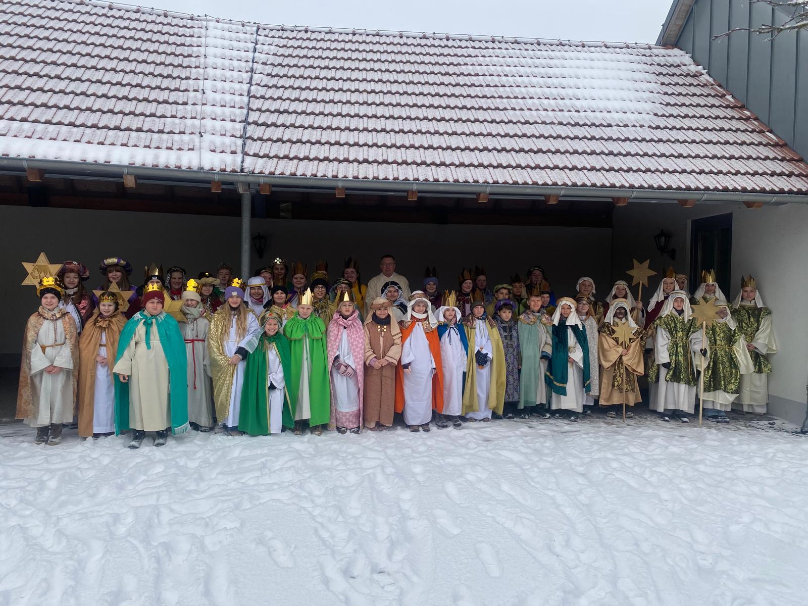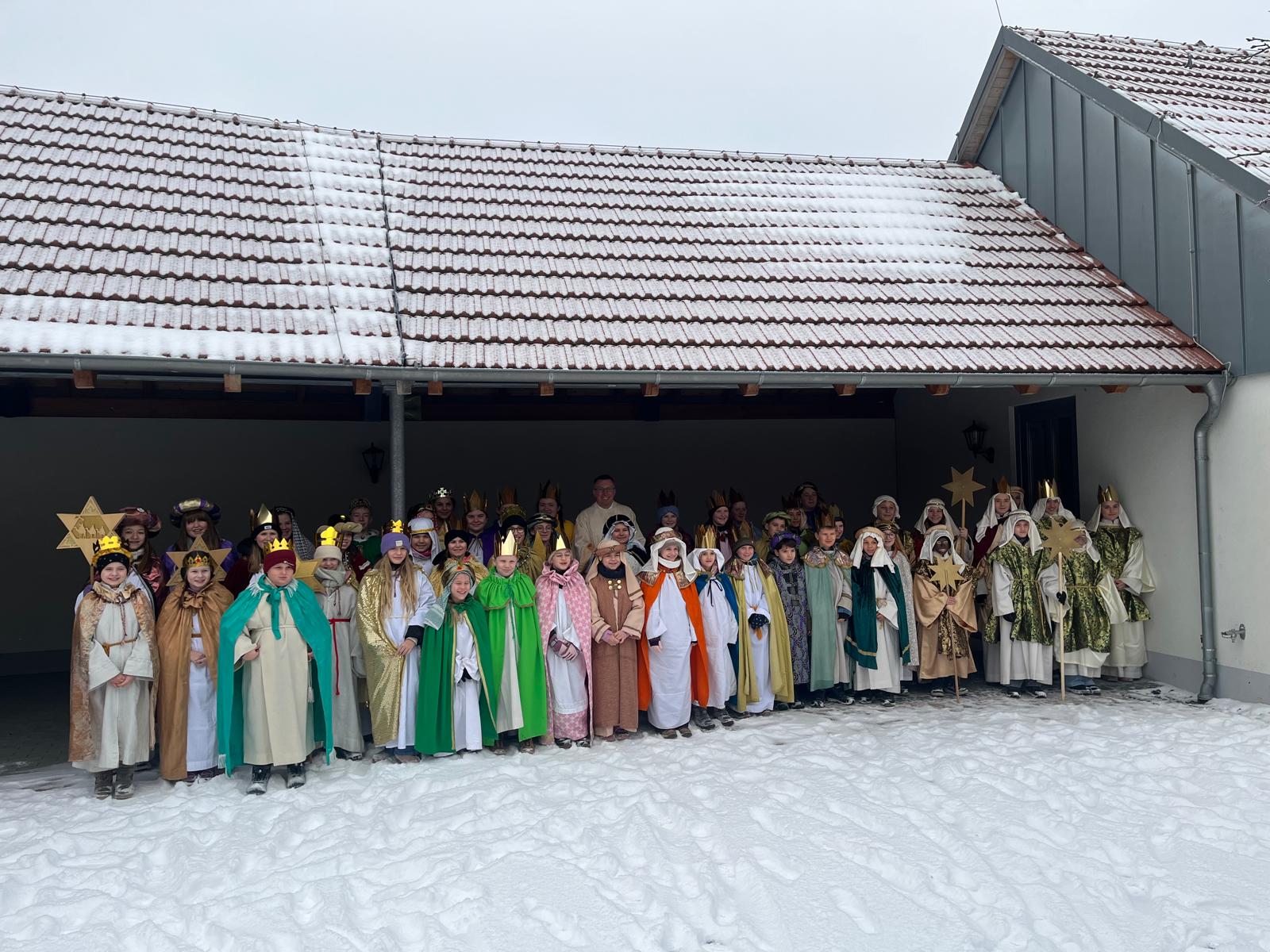 In ihren prächtigen Gewändern und mit dem leuchtenden Stern voran zogen sie von Haus zu Haus, schrieben den Segen „C+M+B“ an die Türen und sammelten Spenden für Kinder in Not weltweit. Trotz winterlicher Temperaturen ließen sich die Sternsinger nicht beirren und brachten die Weihnachtsbotschaft direkt zu den Menschen in unserem Pastoralen Raum.