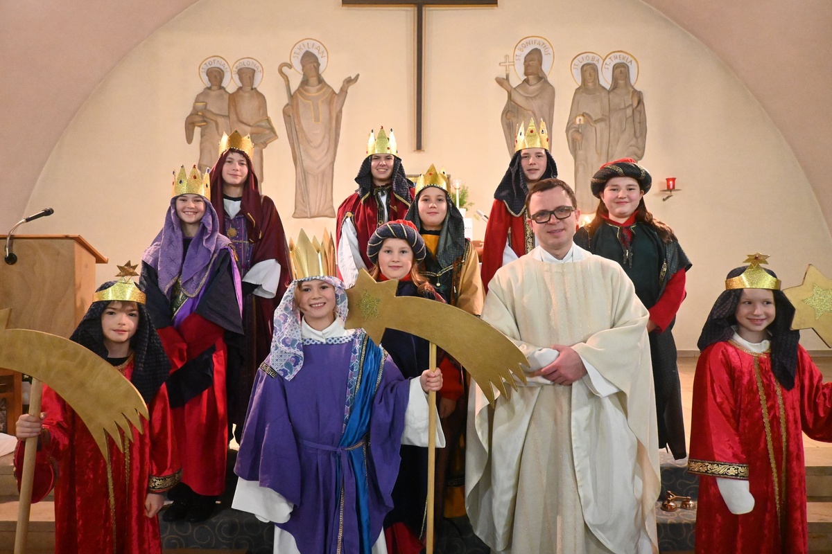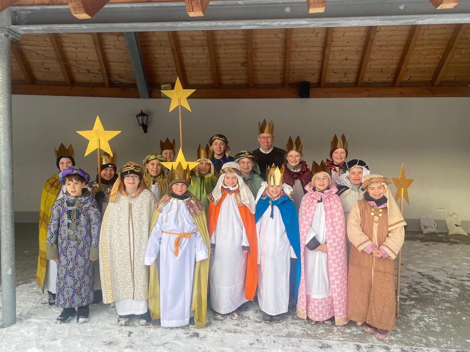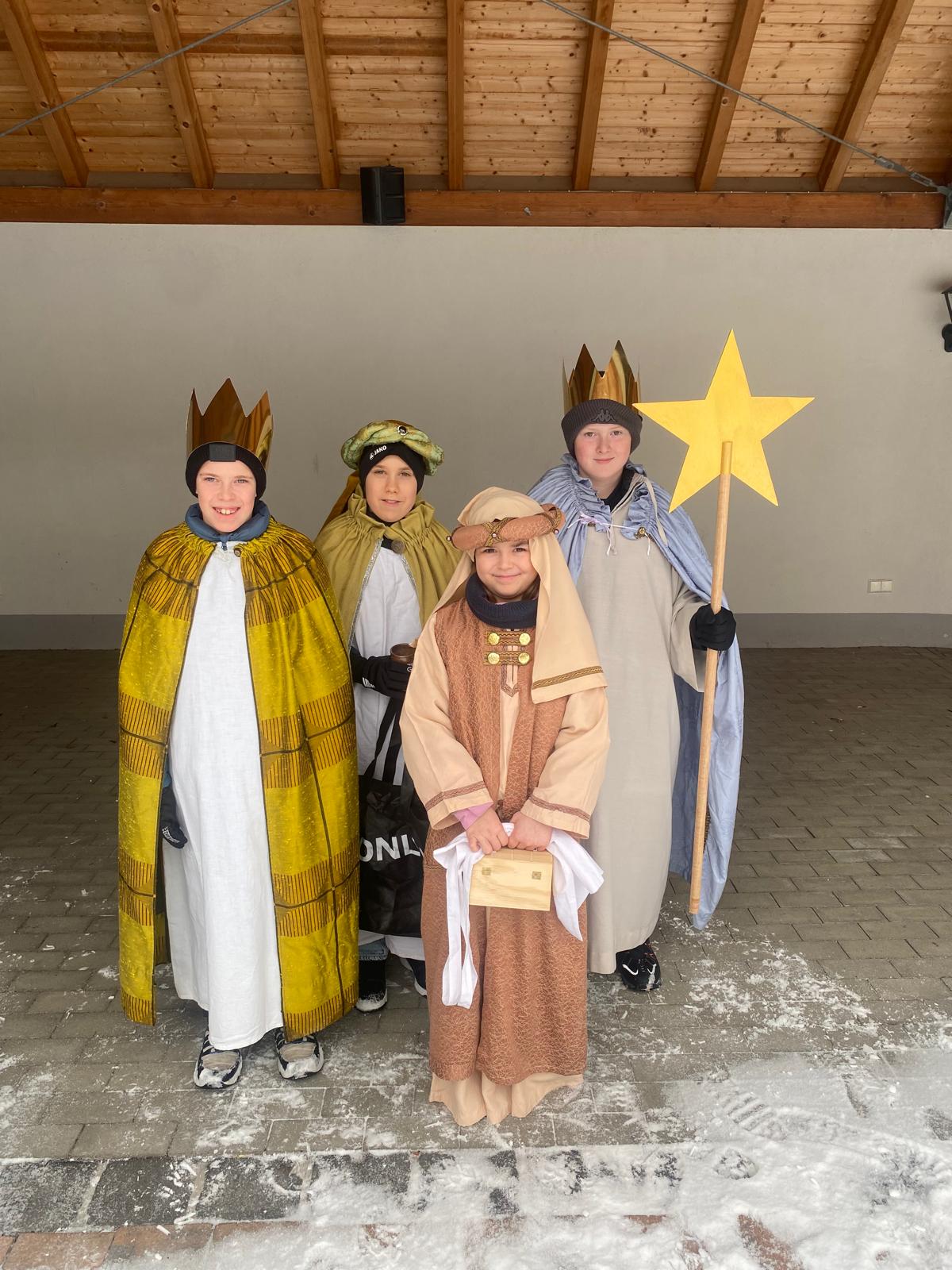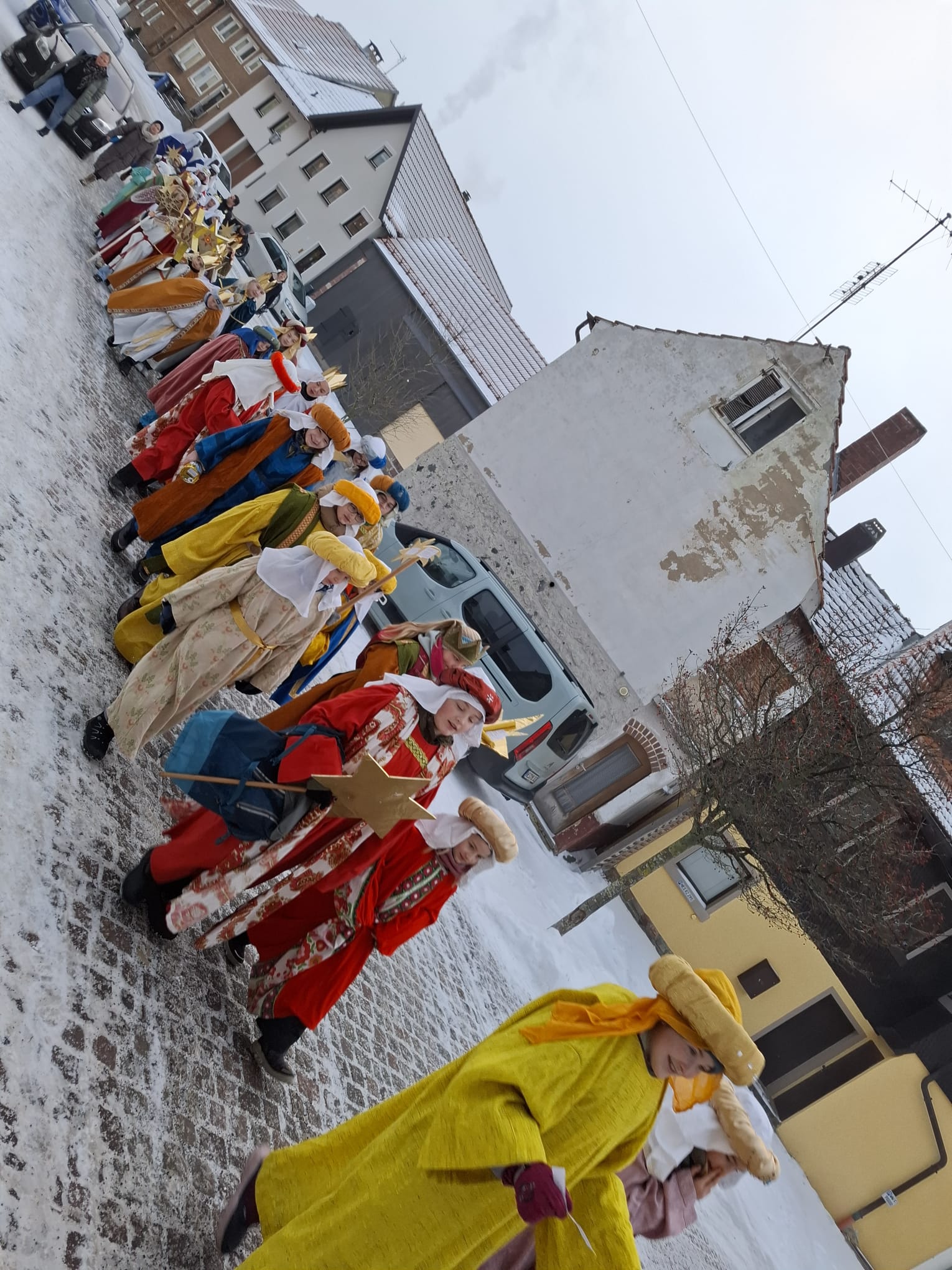 In ihren prächtigen Gewändern und mit dem leuchtenden Stern voran zogen sie von Haus zu Haus, schrieben den Segen „C+M+B“ an die Türen und sammelten Spenden für Kinder in Not weltweit. Trotz winterlicher Temperaturen ließen sich die Sternsinger nicht beirren und brachten die Weihnachtsbotschaft direkt zu den Menschen in unserem Pastoralen Raum.