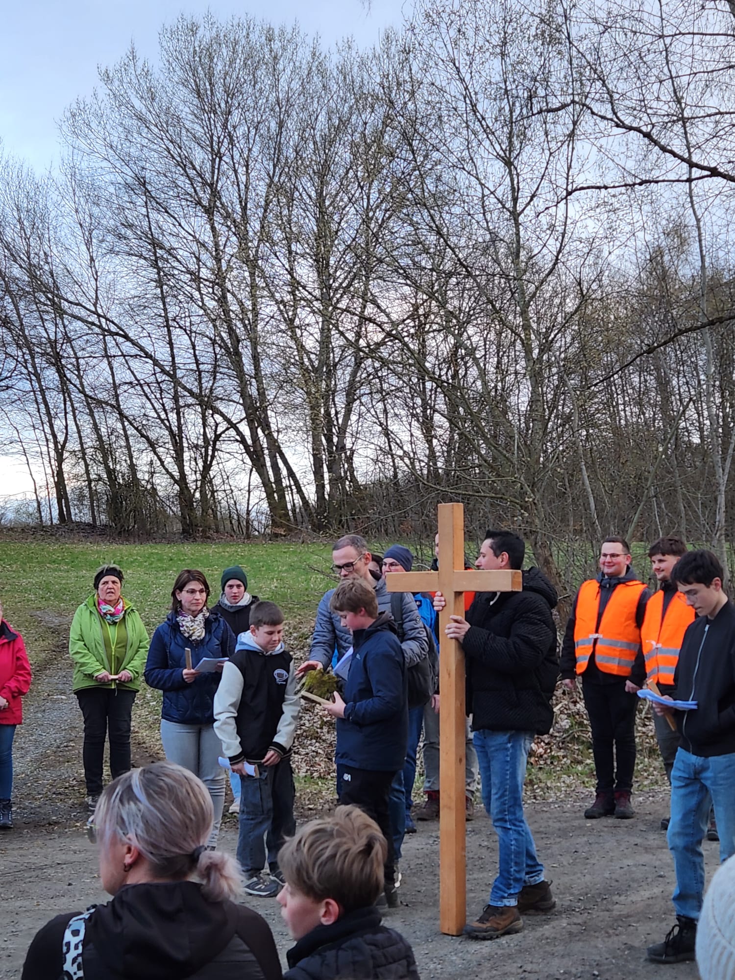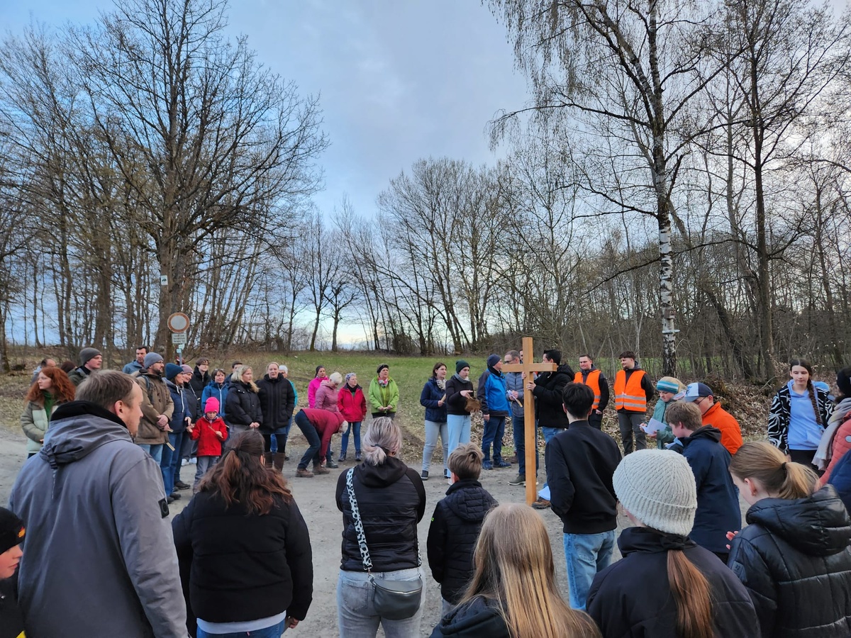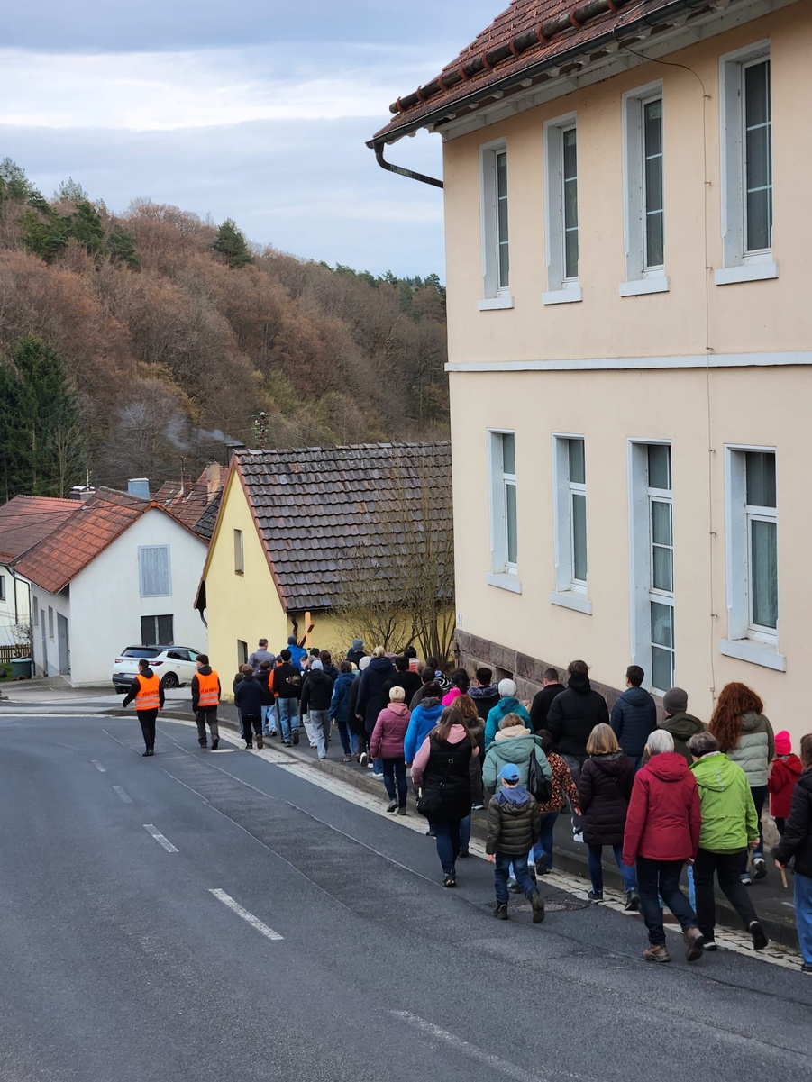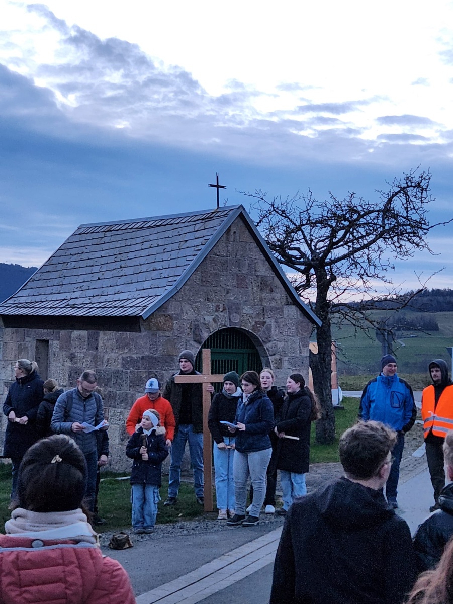 Am Karfeitagabend haben sich zahlreiche Firmlinge mit Familien unf Gemeindemitglieder auf den Kreuzgang gemacht, der sie von der Kirche in Schmalwasser über mehrere Stationen bis zum Hof der Pfarrscheune in Sandberg geführt hat.