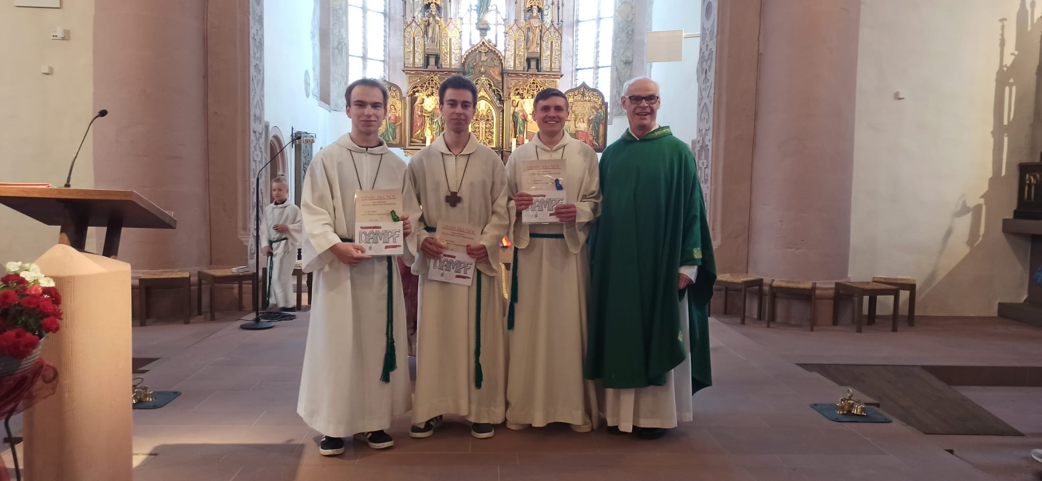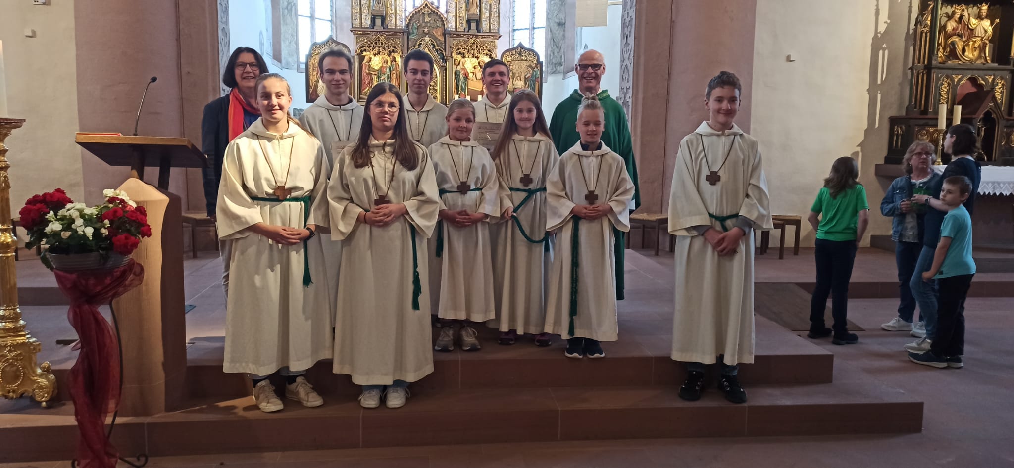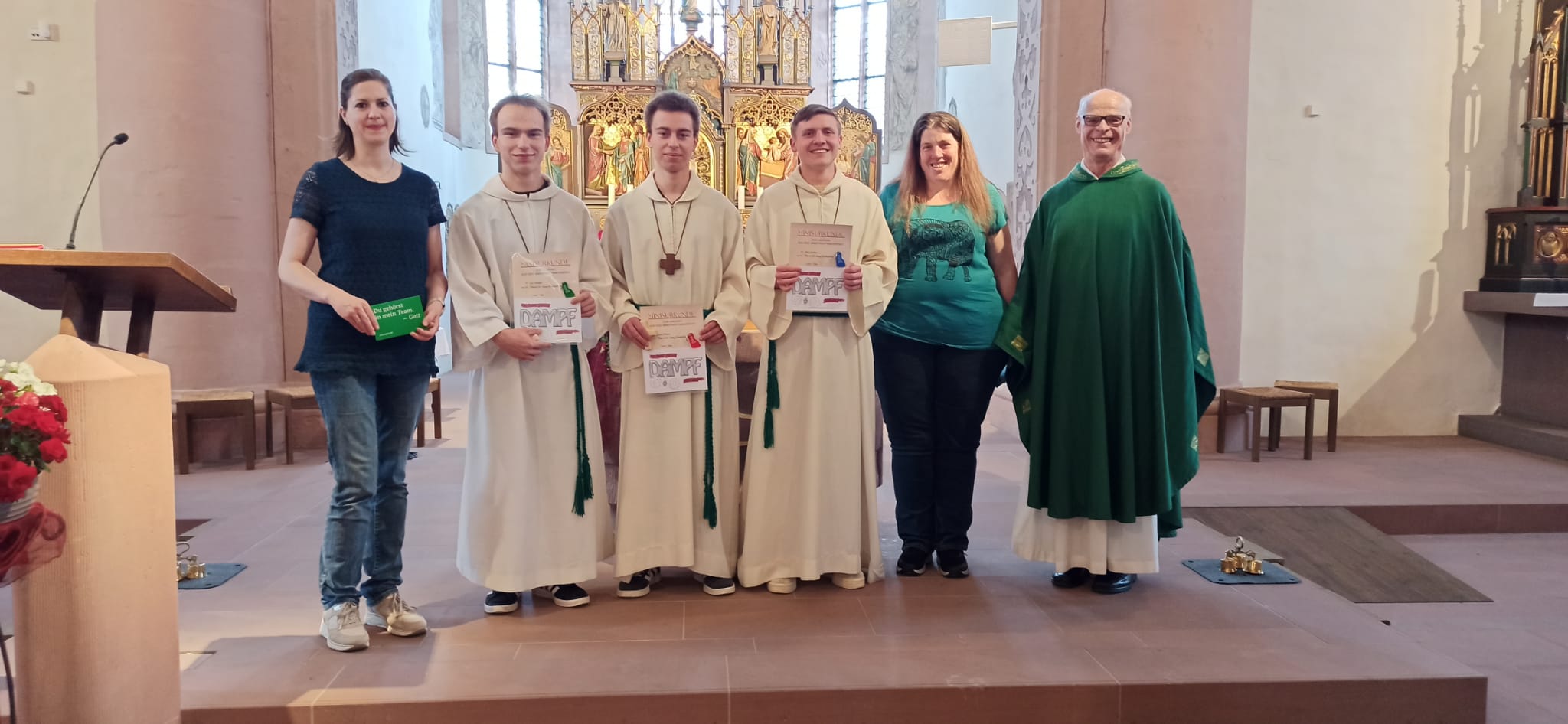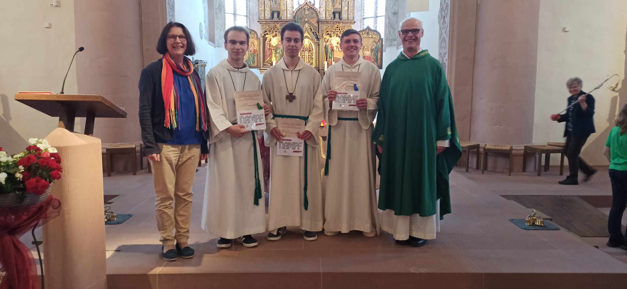 Fast zwei Jahre lang haben sie auch organisatorische Aufgaben übernommen, ebenso die Betreuung aller Ministrant*innen. Pfarrer Manfred Endres und Gemeindereferentin Regina Bühner bedankten sich bei ihnen mit einer Dank-Urkunde und einem Geschenk, verbunden mit guten Segenswünschen für ihren weiteren Lebensweg. Ein herzlicher Dank ging auch an ihre Eltern, die den Ministrantendienst ihrer Kinder immer unterstützten. Für die Betreuung der Minis in Bischofsheim haben sich zwei Frauen bereiterklärt. Ihnen wurde für die Bereitschaft herzlich gedankt und für ihren Dienst Gottes Segen erbeten.