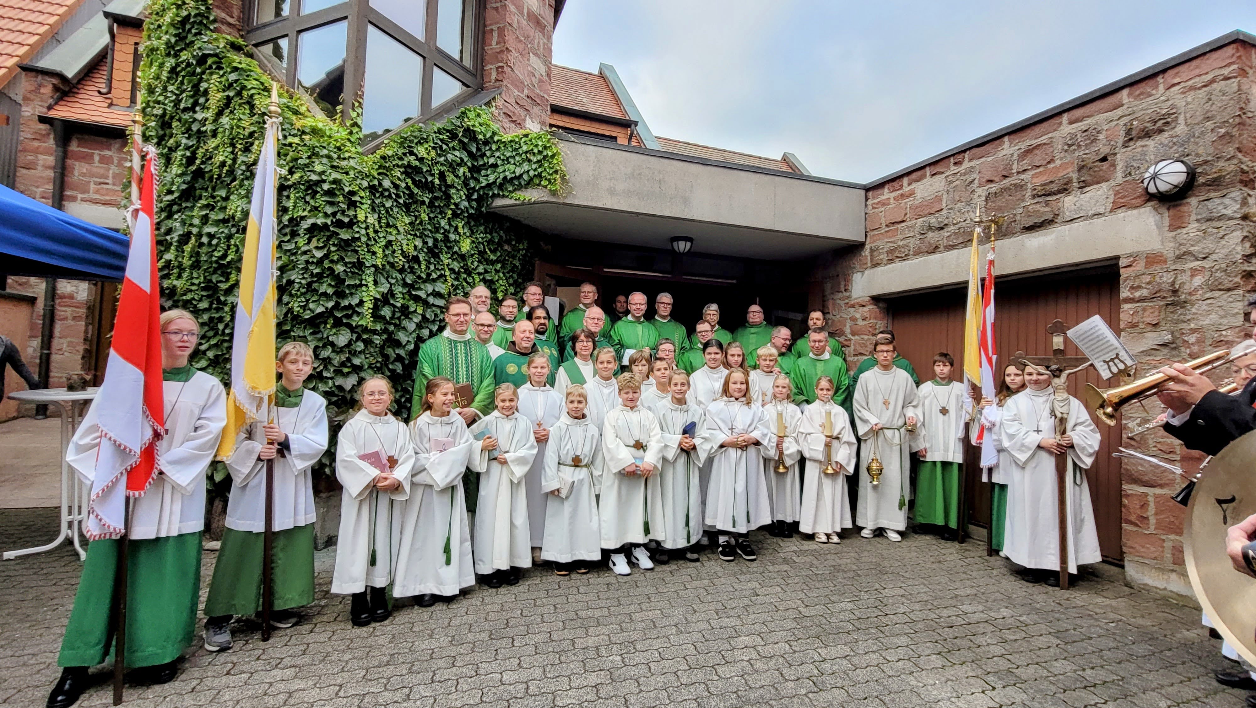 Die musikalische Gestaltung war ebenso vielfältig wie festlich: Der Kirchenchor Sandberg unter der Leitung von Karl Friedel, Dekanatskantor Markus Wollmann sowie Trompeter Lukas Breitenbach sorgten für besondere Akzente. Nach dem Gottesdienst zog die Gemeinde, musikalisch begleitet von der Blaskapelle aus Haselbach zum Kardinal-Döpfner-Haus. Dort bot der Pfarrgarten Raum für Begegnung und Gespräche – untermalt von Alphornklängen.