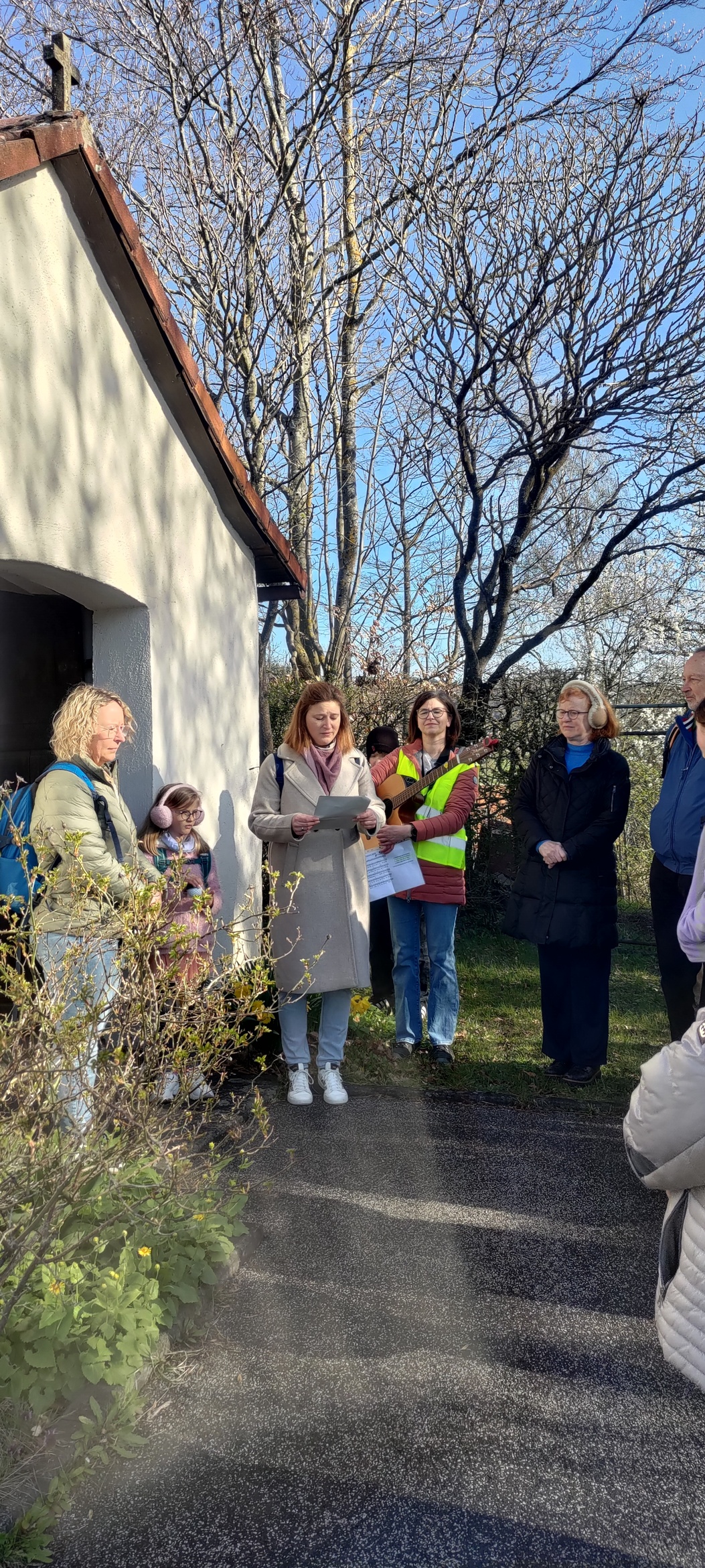 Die freundlichen Sonnenstrahlen sorgten für eine leichte, fröhliche Stimmung – ganz anders als bei den Jüngern nach dem Tod Jesu. Auf dem Weg griffen die Gruppen diese Gegensätze auf: Mit Texten aus dem Lukasevangelium und Impulsfragen versetzten sich die Teilnehmenden in die Situation der Emmaus-Jünger. Gemeinsame Lieder begleiteten den Weg und schufen eine besondere Verbindung zwischen den Wandernden. Auch viele Familien mit Kindern waren dabei und erlebten den Weg bewusst und gemeinschaftlich.