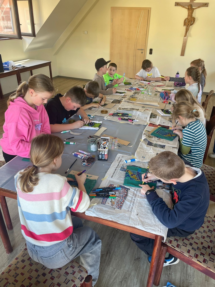 Die fröhliche Runde im KDH spielte, sang, bastelte und kochte in vier Gruppen zu Vorschlägen aus Nigeria. Unter anderem gestaltete eine Gruppe Ruhekissen zu dem Motto des Tages:
